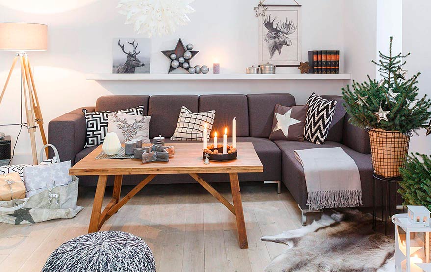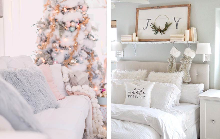 Чтобы дом выглядел стильно и все декоративные элементы сочетались друг с другом – выберете один из оттенков года и сделайте его основным. Дополните интерьер подсвечниками в серебристо-белой цветовой гамме, диванными подушками, новогодними пледами и статуэтками.